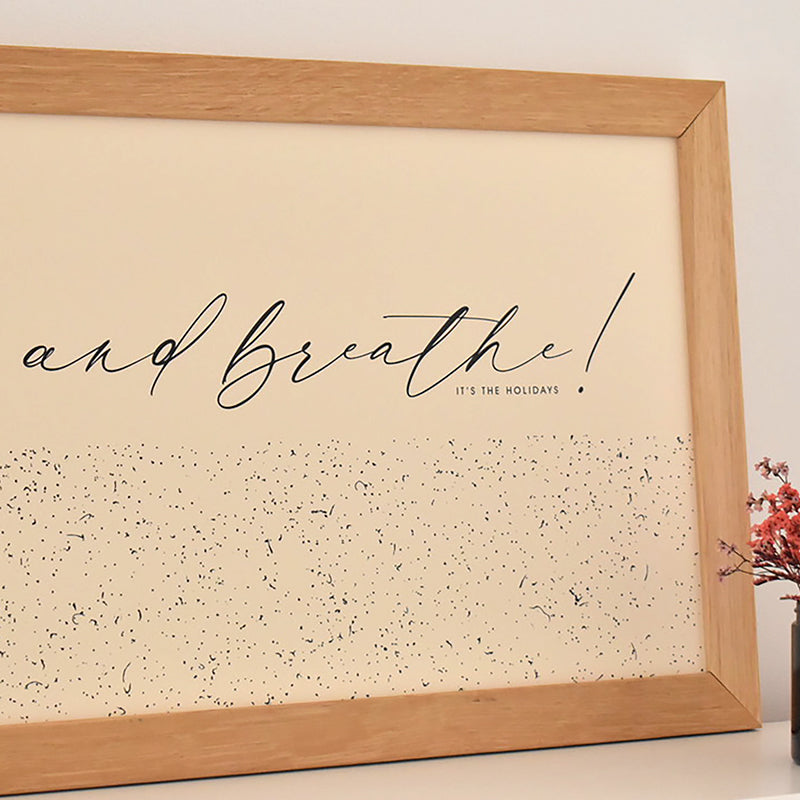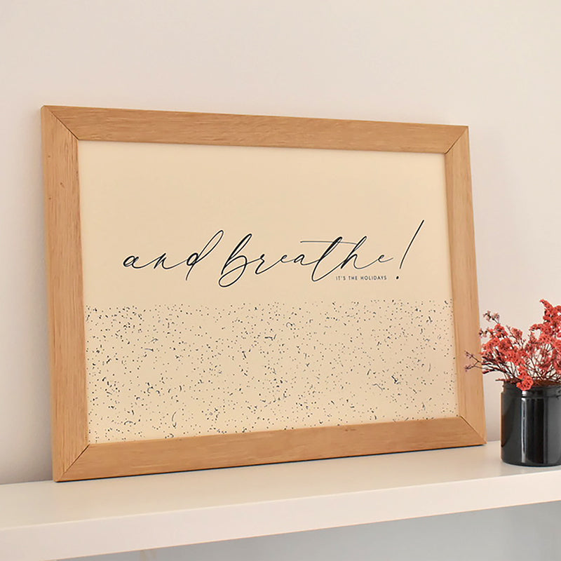 Printed on cream card the wording on the print reads "And Breathe - It's The Holidays".
