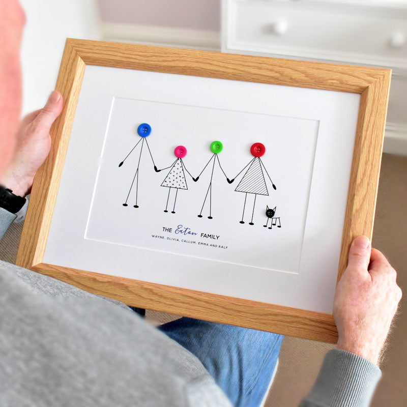 Capture the family in a fun and meaningful way with this personalised button people family print.