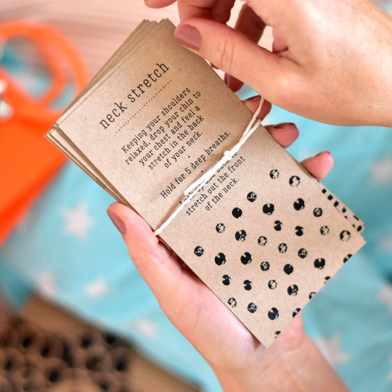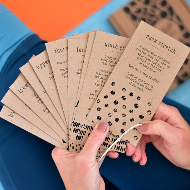 • 10 stretches cards, these are great stretches to do before or after you go out for a bike ride. These cards are printed on recycled kraft card and wrapped in natural string.