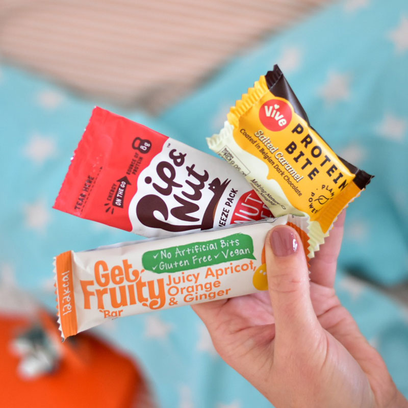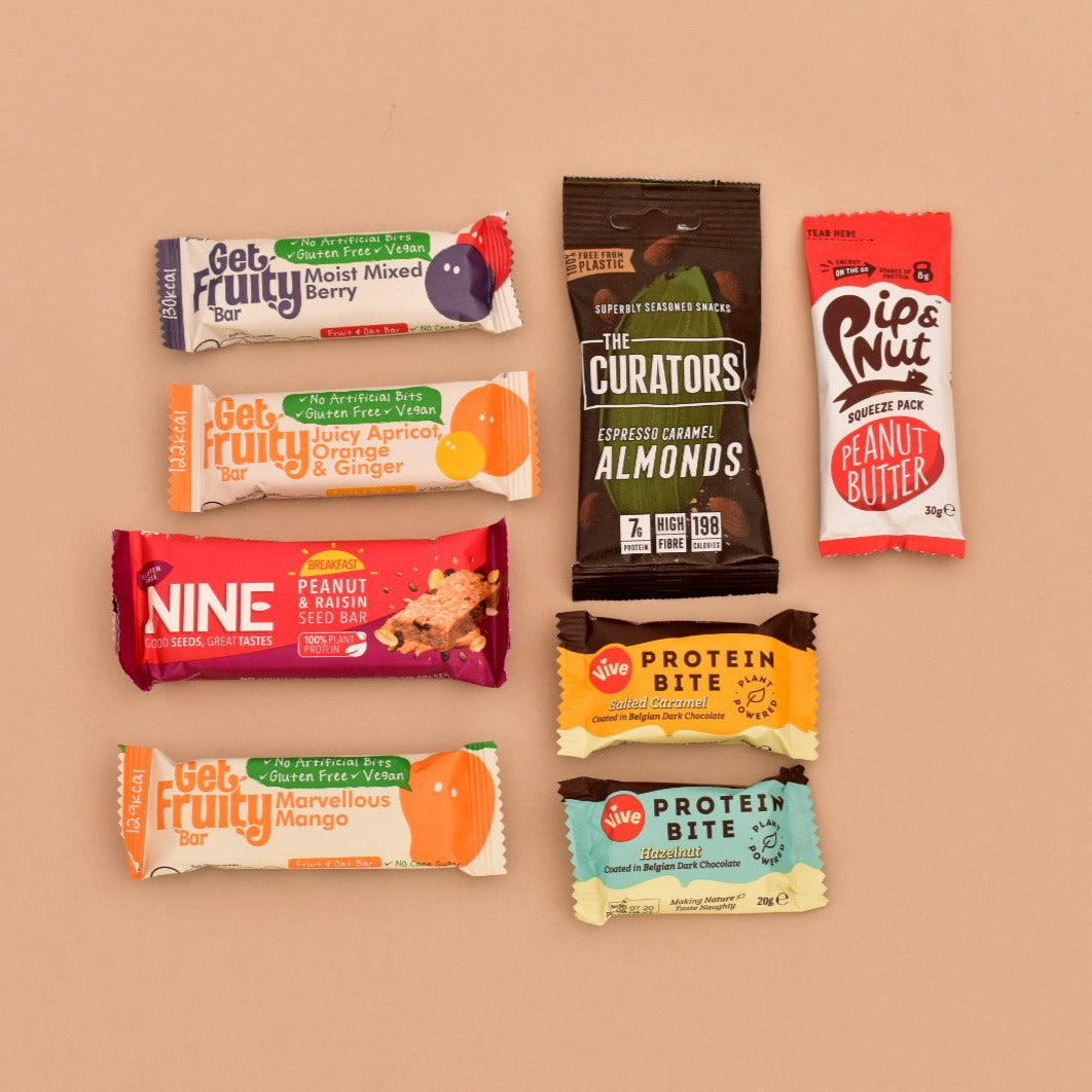 • Each box will contain 3 food or drink items. The 3 items will be picked from the following: 1 sachet of Moma Jumbo Oat Porridge Raspberry, Chia and Pumpkins • 1 sachet of Moma Jumbo Oat Porridge Peanut Butter and Maple Syrup • 1 Vive Protein Bite Peanut Butter • 1 Get Fruity Juicy Apricot, Orange and Ginger Oat Bar • 1 Get Fruity Juicy Oat Bar Juicy Berry Mix • 2 Up Beet energy teas • 1 pack of Cranberry natural Yoghurt covered raisins • 1 Stoats Blueberry and Honey Porridge Oat Bar • 1 Stoats Banana and Multiseed Porridge Oat Bar • 1 Doisy & Dam Dark Chocolate, Goji and Orange • 2 sachets of Beanies Flavour Coffee.