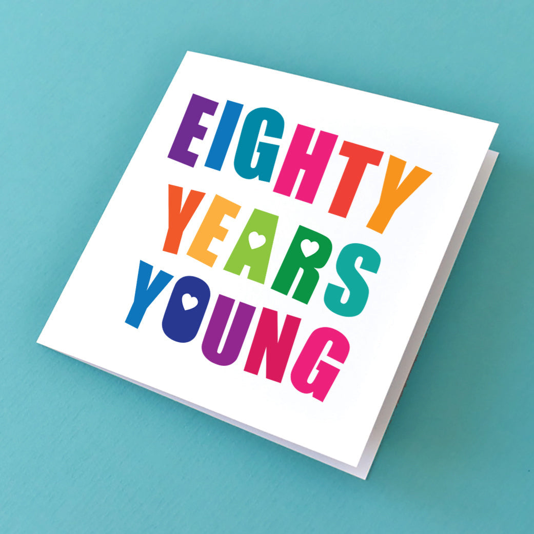 Celebrate eighty years of life with this Eighty Years Young birthday card.