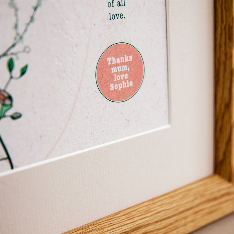 Personalise the print: Add a message inside the small pink roundel.