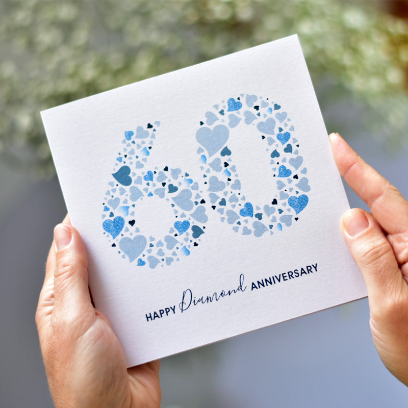 Say "I love you" with lots of blue hearts hearts! This digital diamond anniversary card download has everything you need to express your eternal love! With this 60th diamond anniversary card, you can show your sweetheart just how much they mean to you! Download now and get showered with love!