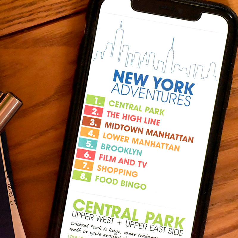 • Food Bingo Card, have fun trying all the different types of New York food and ticking them off the card.