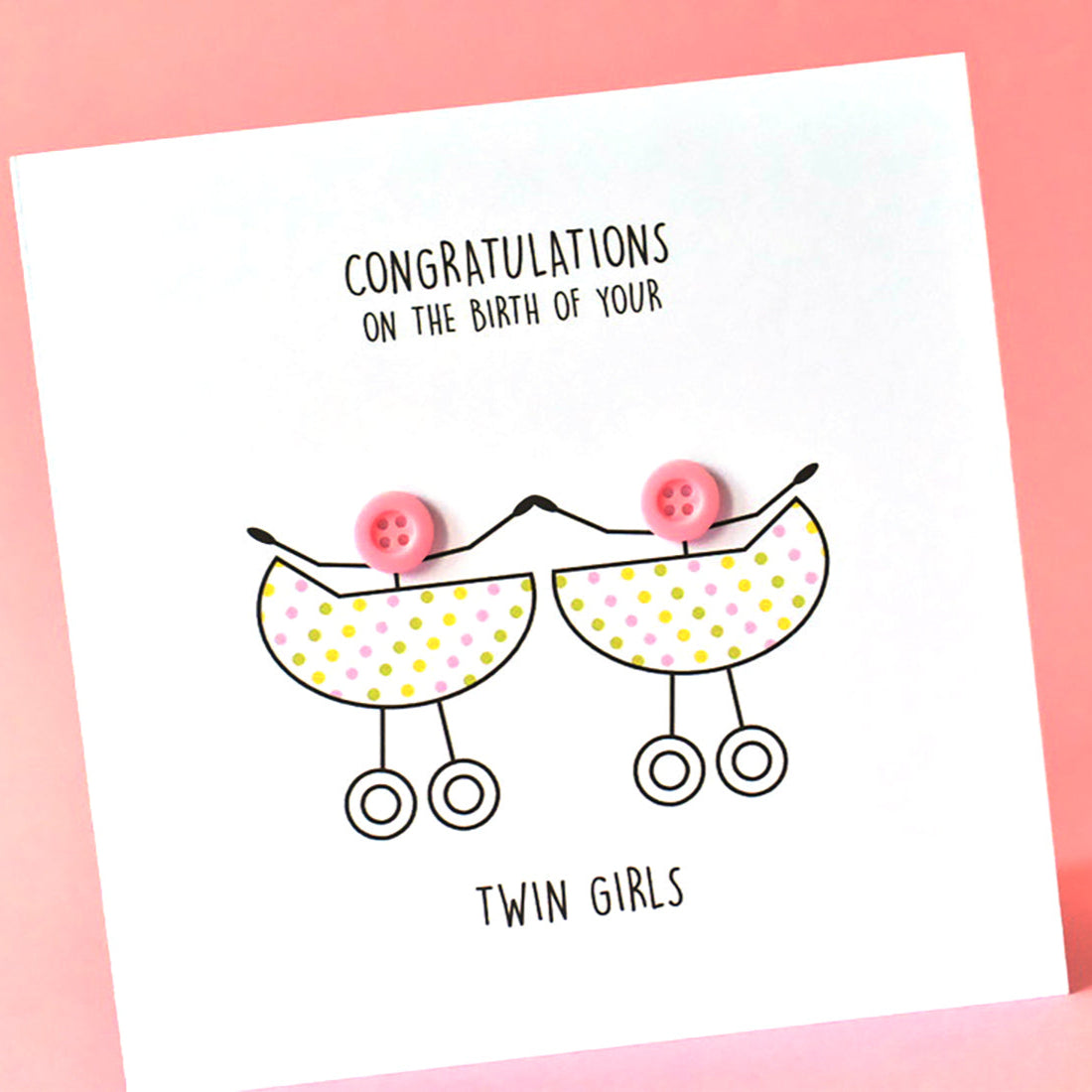 The wording on the card reads "Congratulations of the Birth of your Twin Girls".