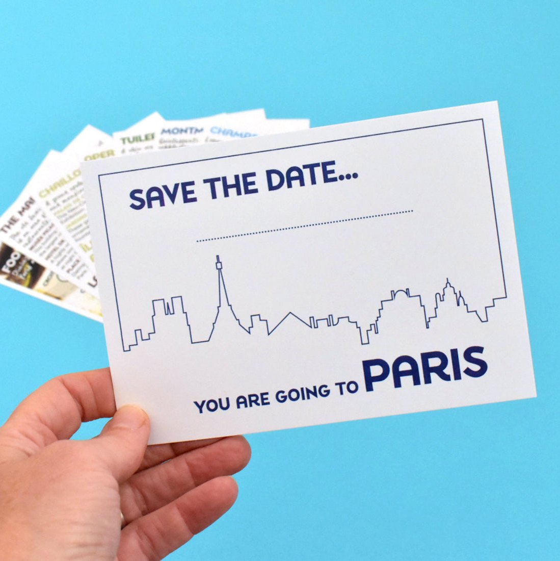 • A "Save the Date, you are going to Paris" card - this card features the Paris skyline as a line drawing and has an area where you can add the date you are travelling to Paris on.
