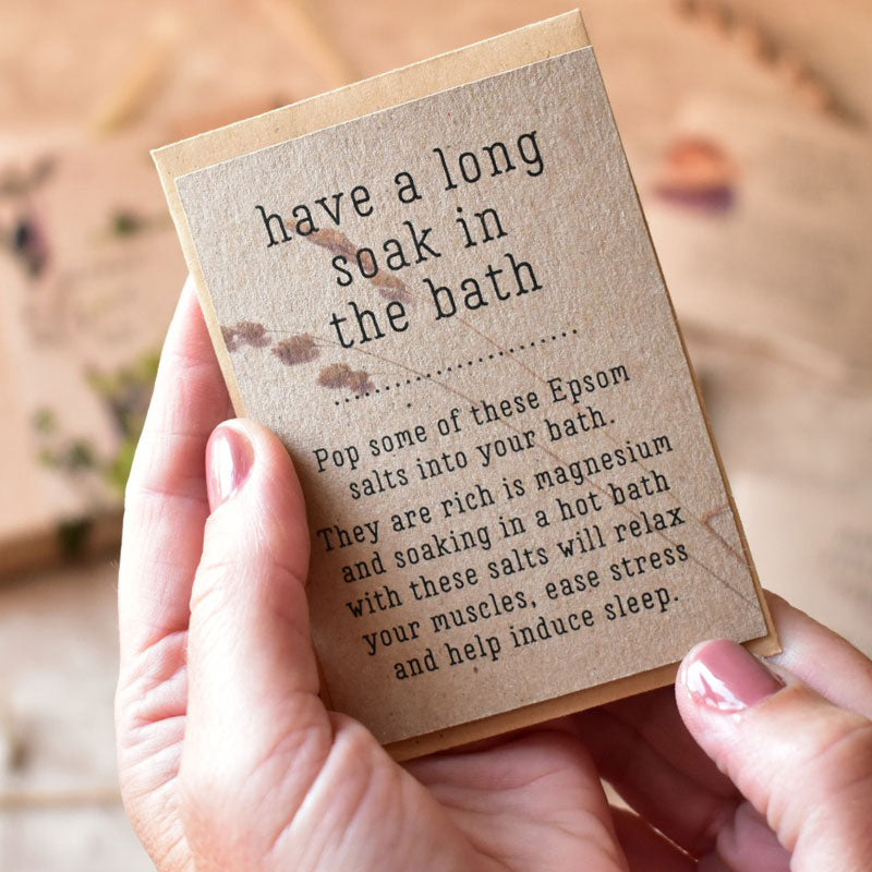 • 2 sachets of 100% pure Epsom Salts for a calming bath experience.
