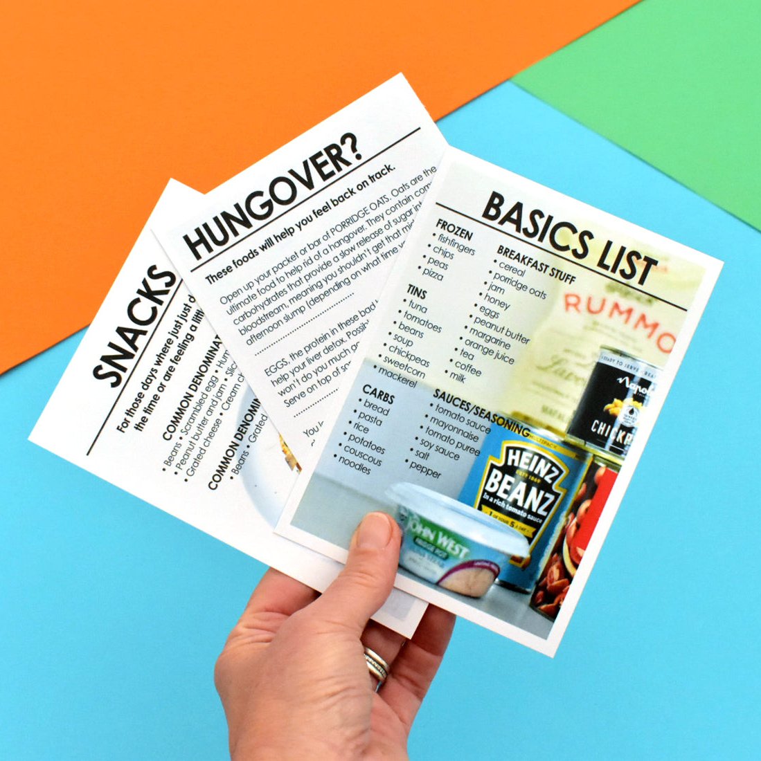 • Nutritional Advice Card: Helpful tips for maintaining a balanced diet and curing hangovers, addressing common health concerns for students.