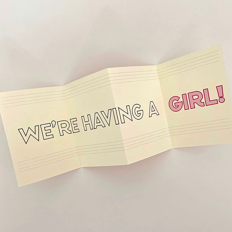 It's a girl! Celebrate the little one on the way with this adorable gender reveal card. Perfect for revealing your sweet secret to family and friends. They won't be able to keep the news to themselves!